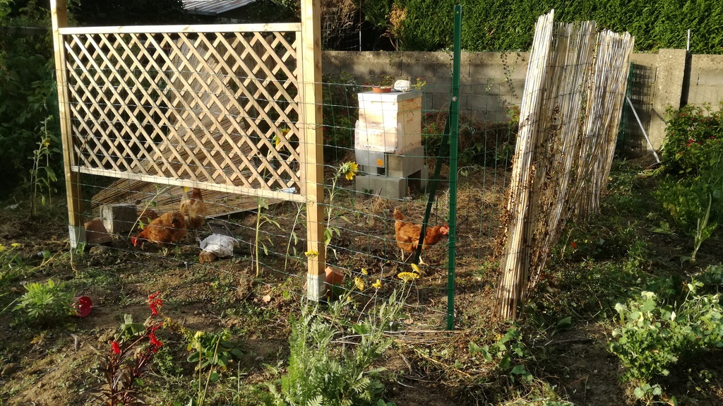 Our hive also produces some honey; it is surrounded by a fence preventing children from accessing it.