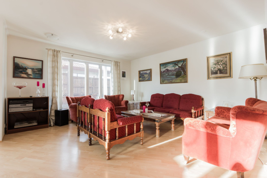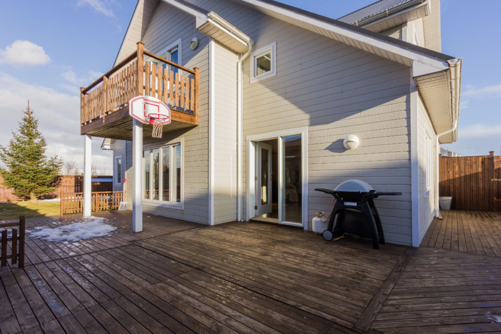 Spacious and family friendly house for 7-8 people in a beautiful neighbourhood with a big terrace and a hot tub in the garden. The house has 5 bedrooms, an office, a tv-room, a laundry room, 2 bathrooms, a big dining and living room and a kitchen. It is located near a golf course, between two lakes (Elliðaárvatn and Vífilstaðavatn) and close to Heiðmörk nature park. Grocery stores, swimming pool, sport center and a shopping mall is nearby.
