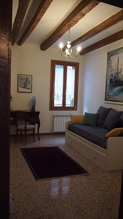 The flat is located in Giudecca Island, the biggest island of the Venetian lagoon. It is a newly restored two-storey house which dates back to the end of the 1700s. It has separate access which is located in a sunny alley highly illuminated by a public lamp post right above the entrance.