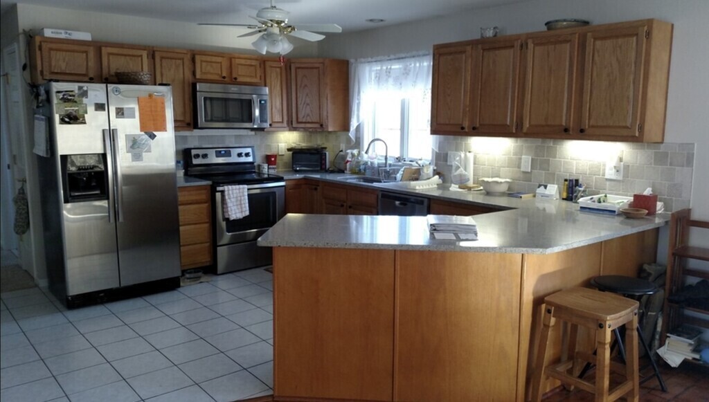 Seeking Simultaneous or Non-simultaneous Home Exchange. We live in a residential neighborhood with private single family homes on 1 acre lots in the country. Our home has living area of approximately 1200 sq ft on one level. On the main level: open living room - dining- updated kitchen. The rooms have large windows and lots of sunlight. One large master bedroom with en-suite bathroom, the second (smaller) bedroom has 2 single beds, then a guest bathroom with shower is off the central hallway. We do not have a garage, but we do have a wide driveway that fits 3 to 4 vehicles, and a full basement with a home workshop and storage. There are 4 to 5 steps with railings to enter the home (side or front entrances).