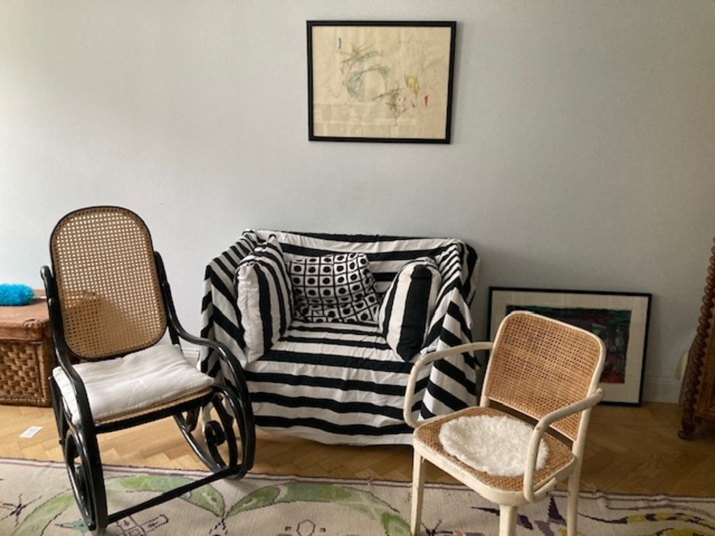 This is a charming duplex apartment on the top floor, in an apartment house built 1952. It has most of its fifties aura left, including a built-in bathtub, light buttons like blackberries and a beautiful creaking staircase made of oak. The 93 sq m apartment has got three rooms and a kitchen. It is very bright with a sunny balcony made for lazy breakfasts.