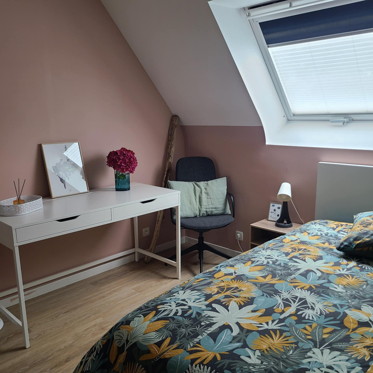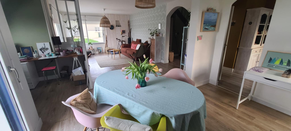 Our house is located in Le Relecq-Kerhuon, near Brest in Brittany. It sits on a fully enclosed 1000 m² plot of land and is just 600 meters from the Plage du Moulin Blanc. The ground floor is perfectly designed for single-level living. The spacious living area opens widely onto the garden, filling the space with natural light. A dedicated office area is integrated into the living room. The kitchen is fully equipped and highly functional. The master suite offers generous space and includes a private en-suite bathroom. Upstairs, there are two bedrooms—one for guests and one for our son. One of the bedrooms features a terrace with a beautiful sea view. There is also a bathroom on the upper floor.