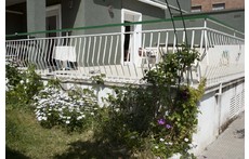 We live in a big modern house with tree floors. On the ground floor there is the living room and lounge with antique pine furniture, a well equipped kitchen, toilets, a large veranda overlooking the garden, a garage for cars and bicycles, shed and room for the washing-machine and drying-machine. Upstairs there are three bedrooms: two bedrooms with one double bed and one bedroom with single bed, bathroom with shower and bath and toilet. On the same floor is also a library and office for personal administration and computer. On the second floor there is a large bedroom and also a large barn and a atelier to draw, sculpt and paint.