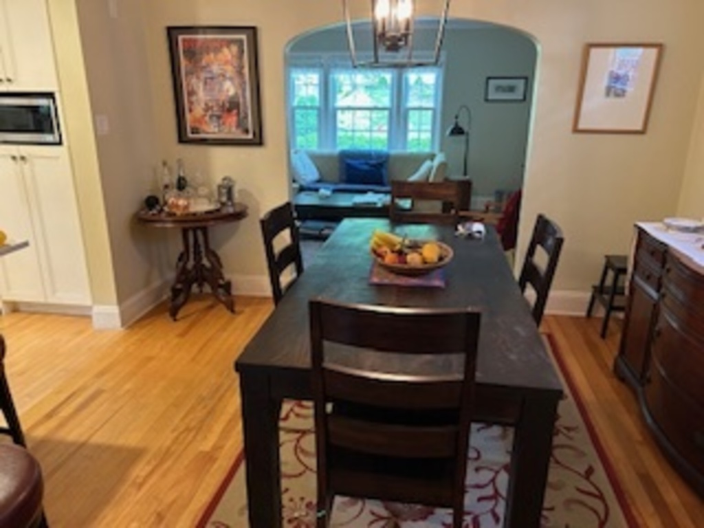 We live in a 2 story (3 bedroom, 3-bath) house on a quiet, residential street. Our backyard is quiet and includes a back deck and BBQ as well as large green space & studio. Our kitchen & main bathroom & family room have been fully renovated.